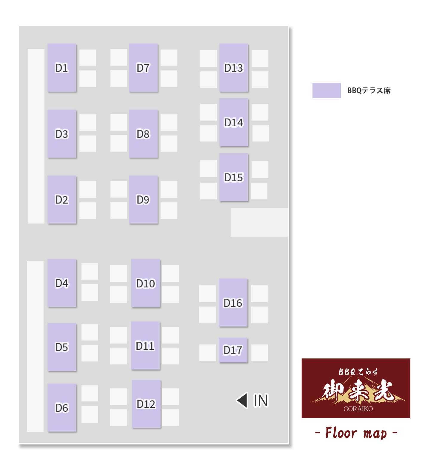 和をイメージしたテラスバーベキューエリアです。都会のど真ん中にいるとは思えない開放的な空間で、最大68名の貸切利用も可能です。